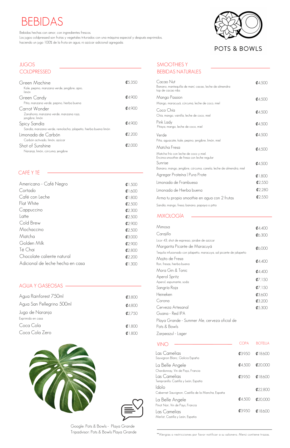 Menú Playa Grande